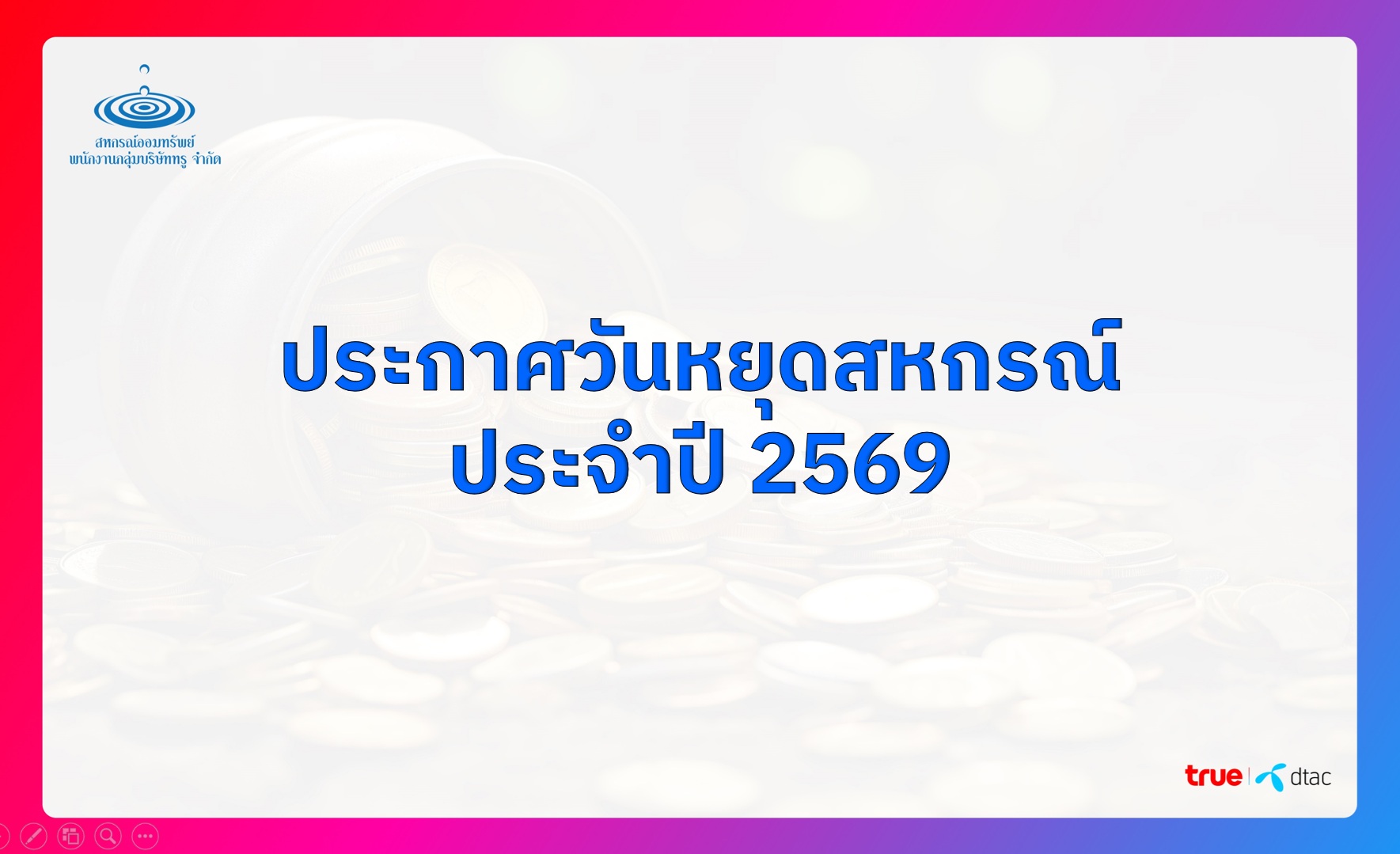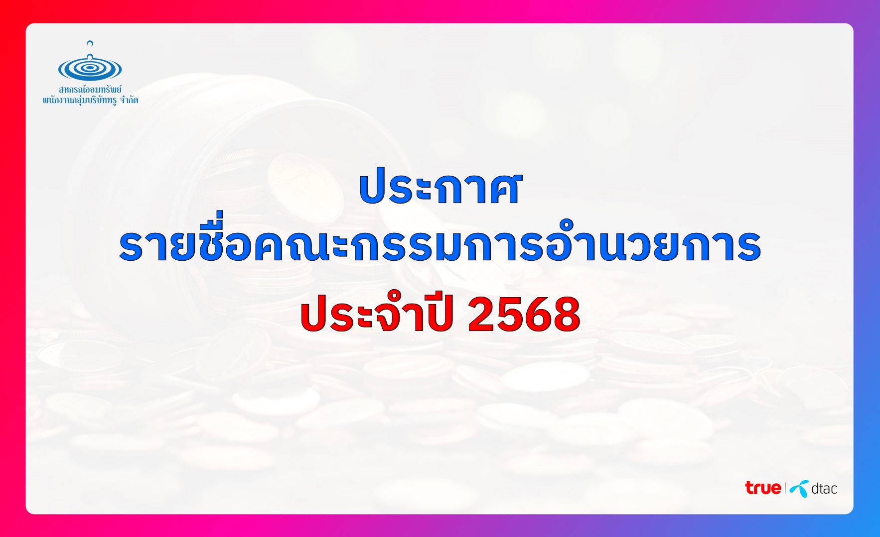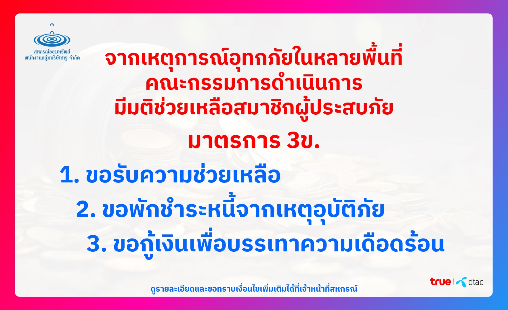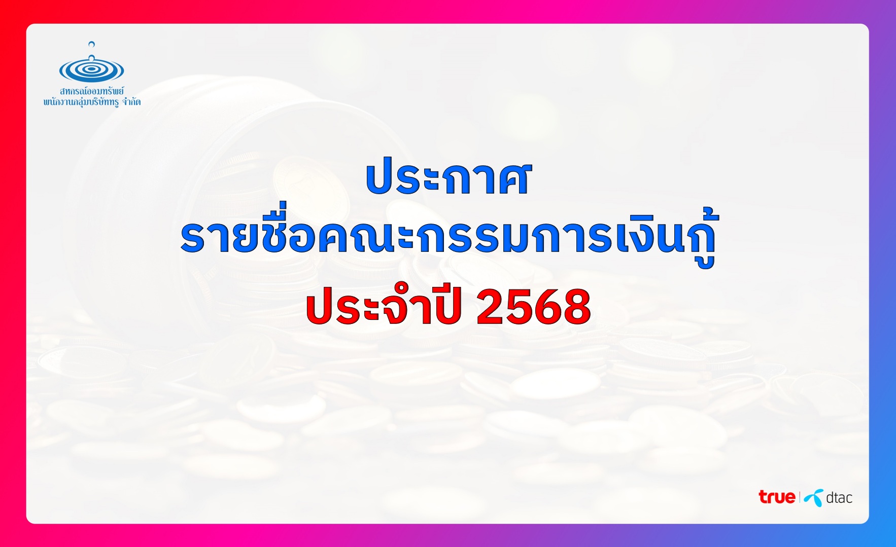 1. ธนาคารกสิกรไทย / สาขาจามจุรี / บัญชีเลขที่ 630-224-3555 ชื่อบัญชี “สหกรณ์ออมทรัพย์พนักงานกลุ่มบริษัททรู จำกัด”